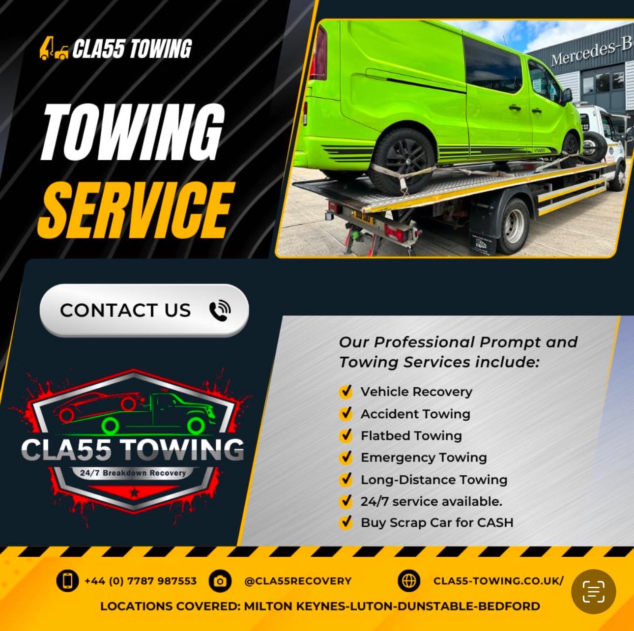 Available 24/7, we are committed to providing a fast response and a stress-free experience when you need it most. Customer satisfaction, safety, and reliability are at the heart of our service. Fully insured and dependable, we take pride in delivering a professional recovery service you can trust, getting you back on the road as quickly and safely as possible.